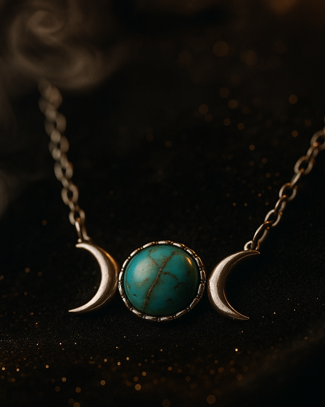 This has become my everyday piece! The design works well for both casual and professional settings. I wear it to work and get compliments regularly. The triple moon design is subtle but elegant, and the stone has this really nice turquoise color with natural veining that catches the light beautifully. The adjustable chain is a nice touch too.